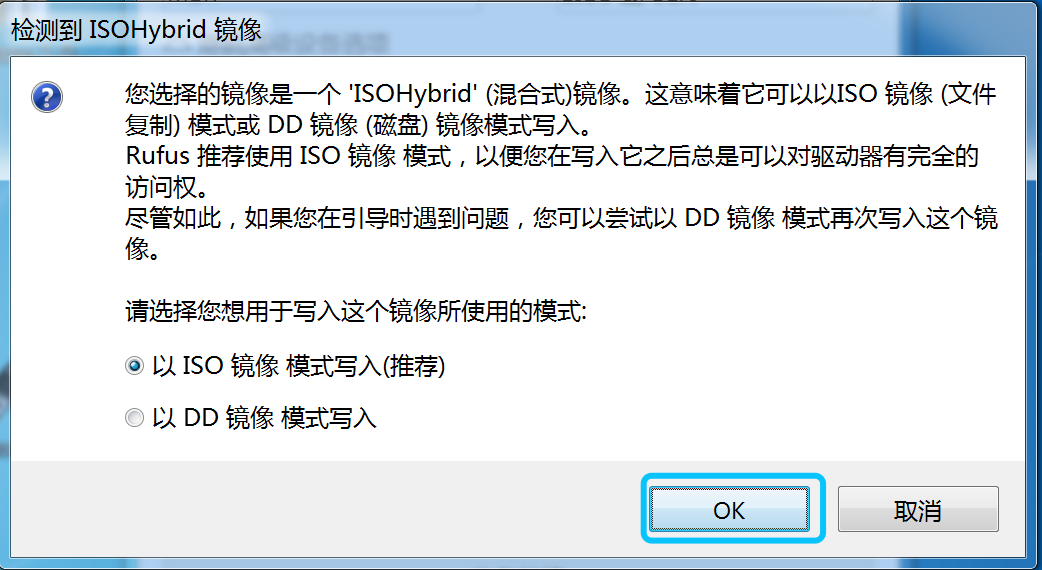 ③ 弹出确认提示框时,点击“确定“,等待制作完成,关闭Rufus,弹出U盘即可。