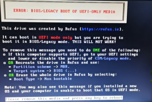 通过U盘安装启动时 提示 ERROR:BIOS/LEGACY BOOT OF UEFI-ONLY MEDIA