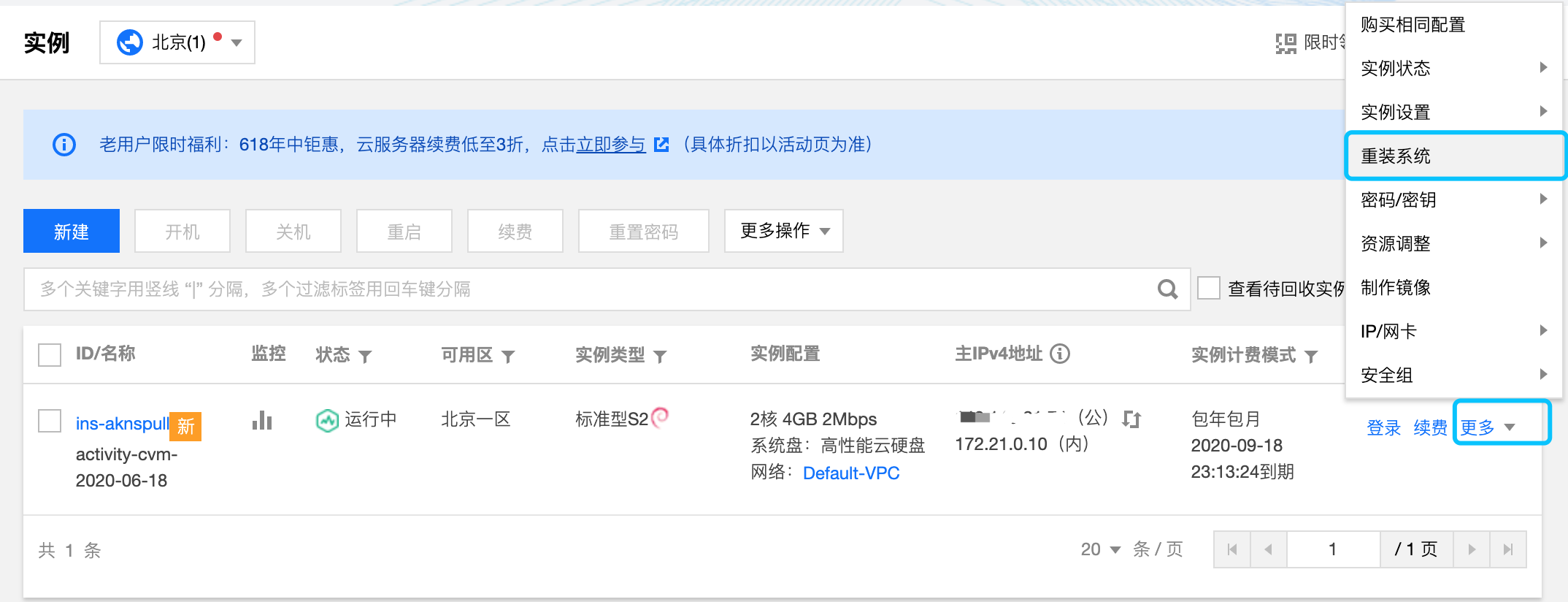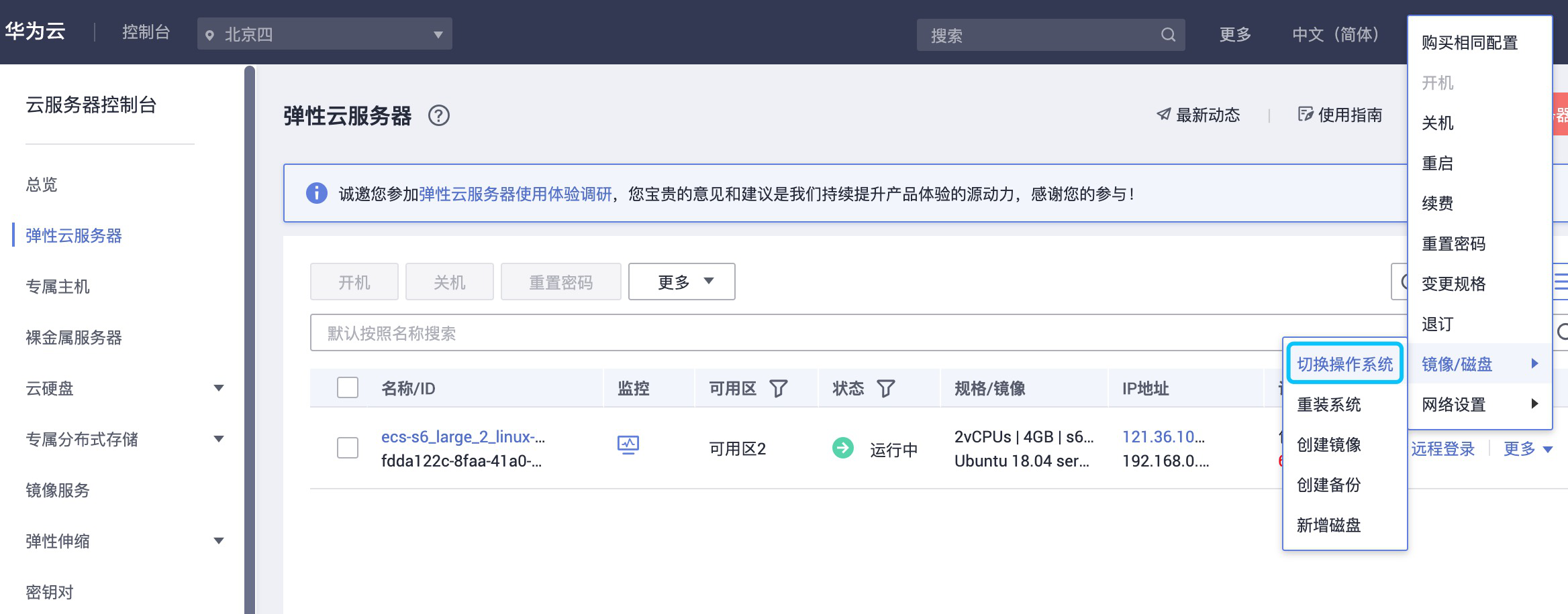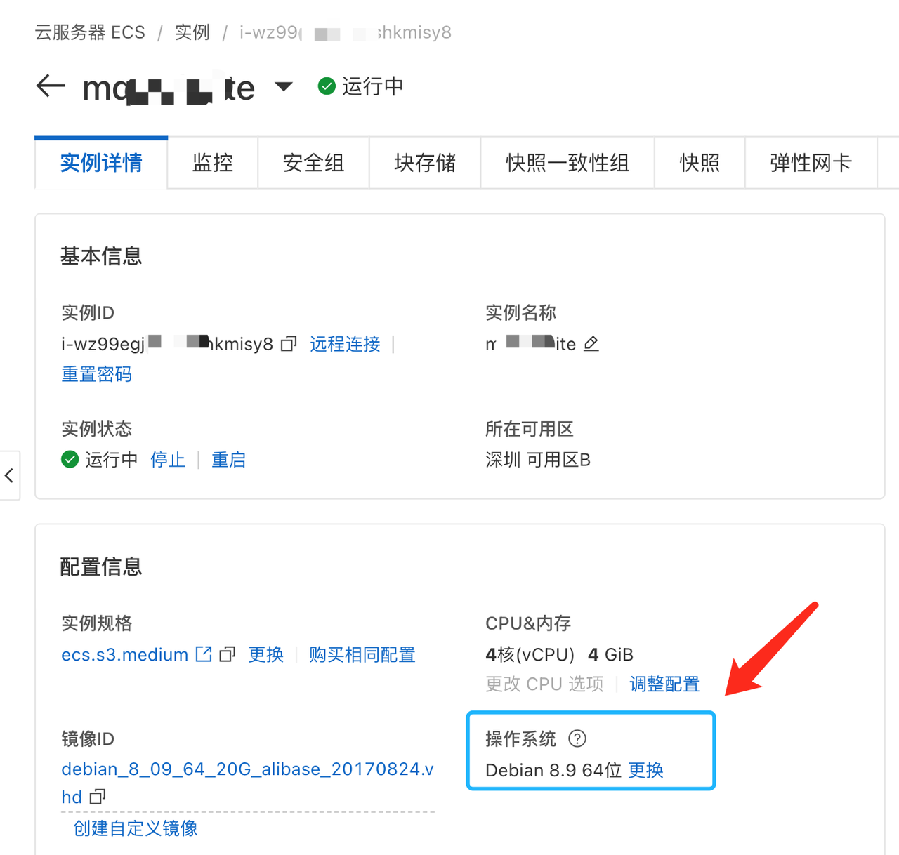 实例详情-》配置信息-》操作系统-》更换: