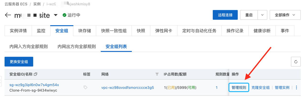 如果您使用的是阿里云香港主机,即使开放所有端口后仍然无法访问,可尝试通过 “更换公网IP” 来解决。