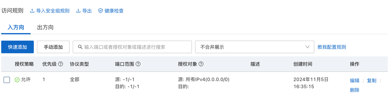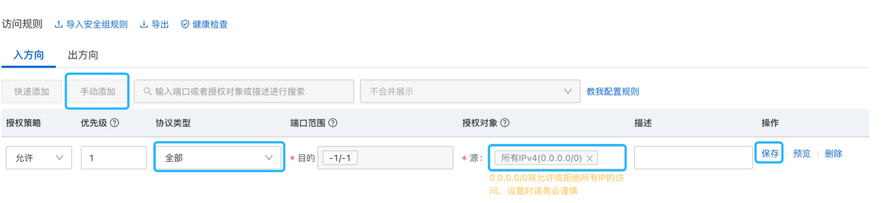 设置ECS的安全/防火墙策略为全开放,以便外网能访问