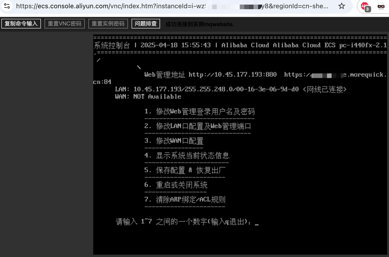 重启后,ECS 的系统将变成了秒开路由系统,原来的Linux不复存在。