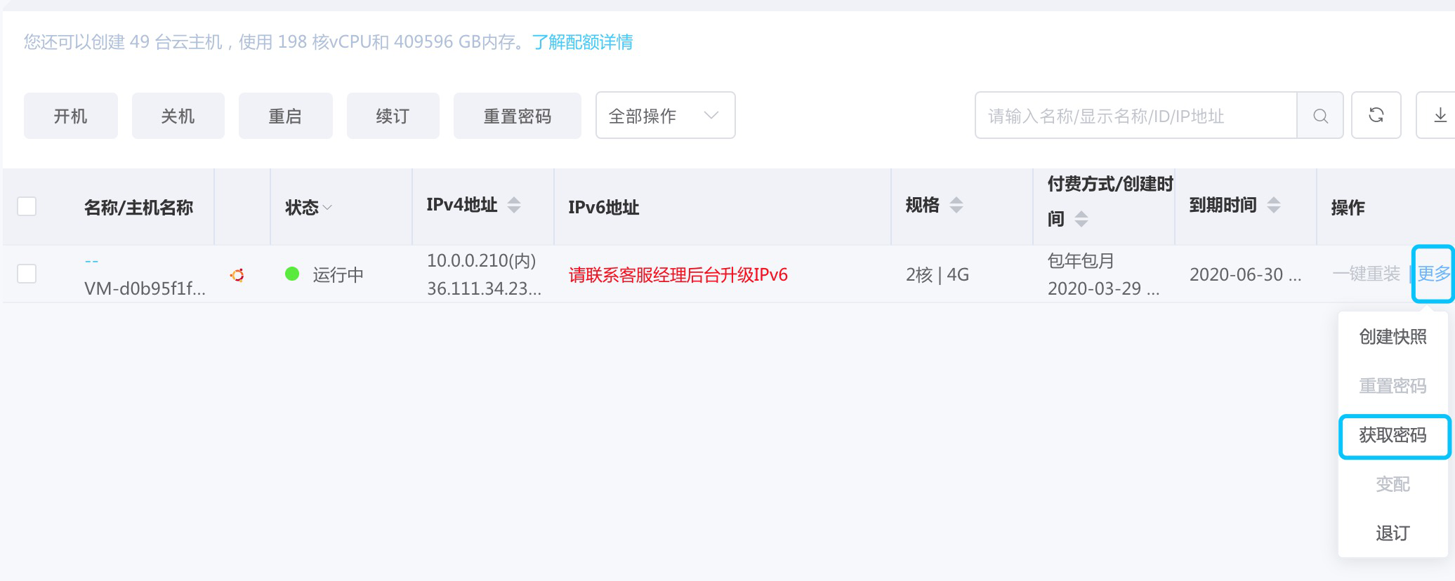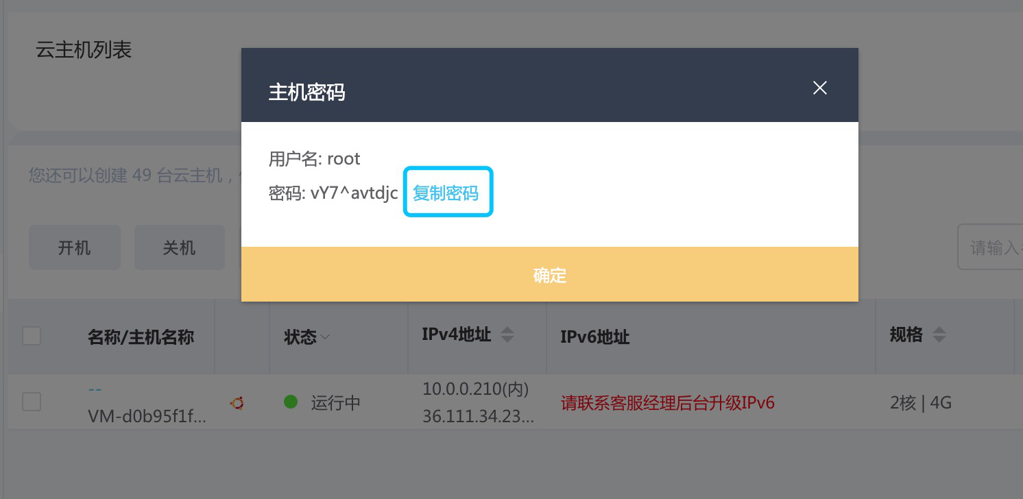 - 操作成功后,启动ECS,获取登录密码