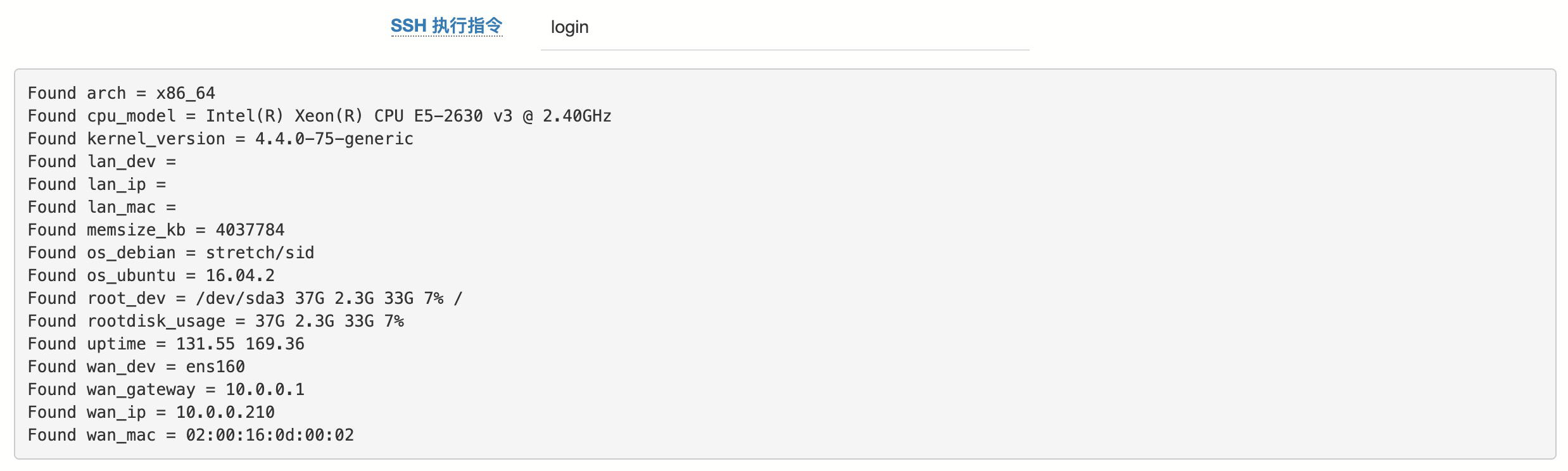 - login 测试云服务器是否能登录,是否满足部署条件