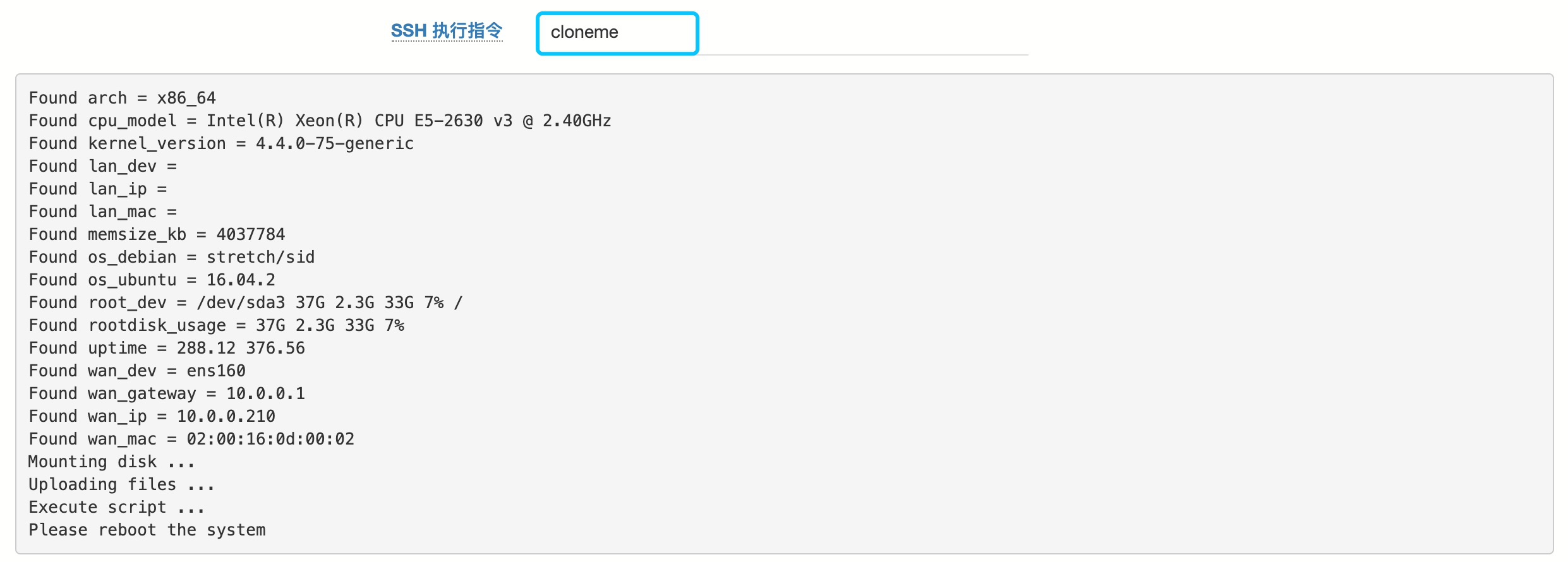 支持的 SSH 指令:login/cloneme/reboot