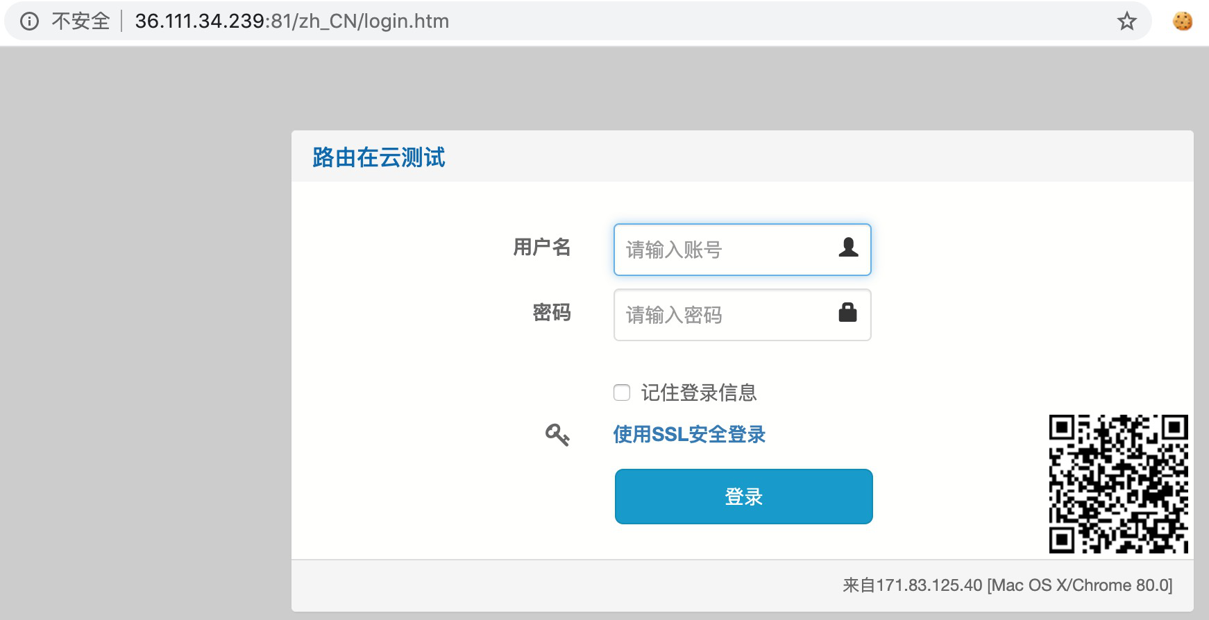 ECS 云路由的访问和被克隆的秒开路由的Web管理端口、账号密码相同,如: