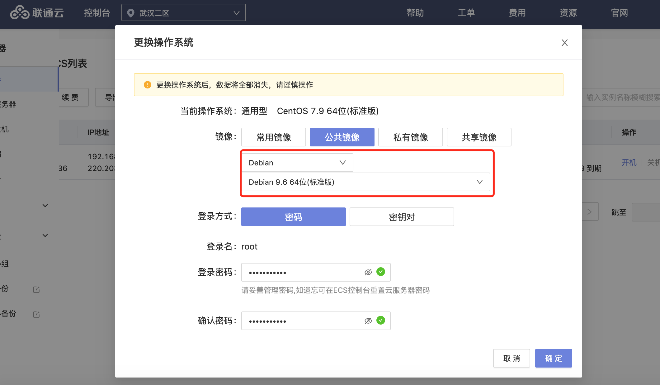 如果您的ECS上有重要数据,请先备份,因为此操作将会将原来的Linux 操作系统直接替换为秒开路由系统。