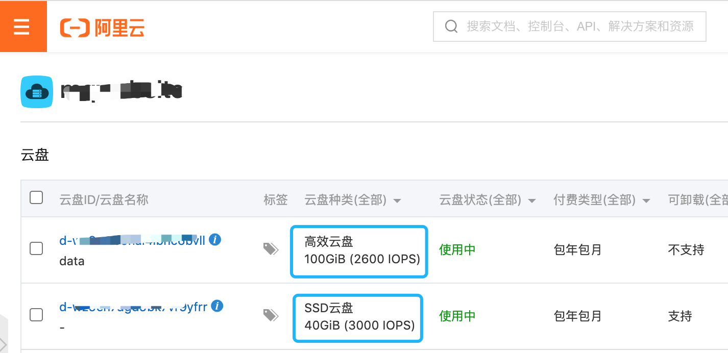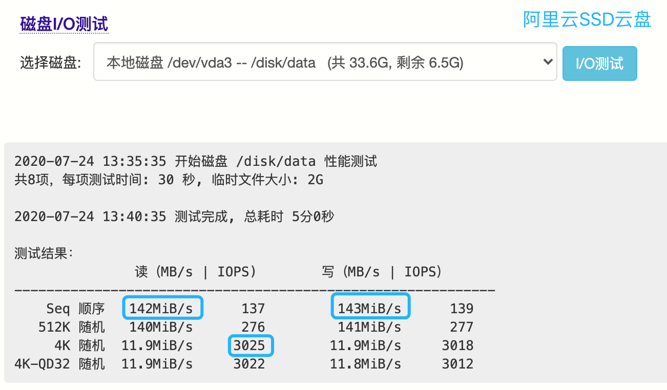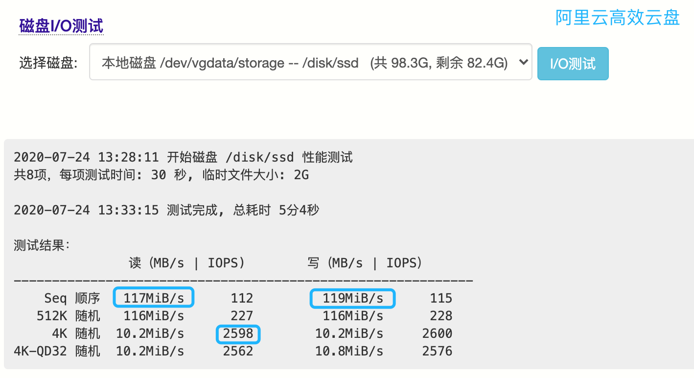 测试目标:阿里云云盘(高效云盘+SSD云盘)
