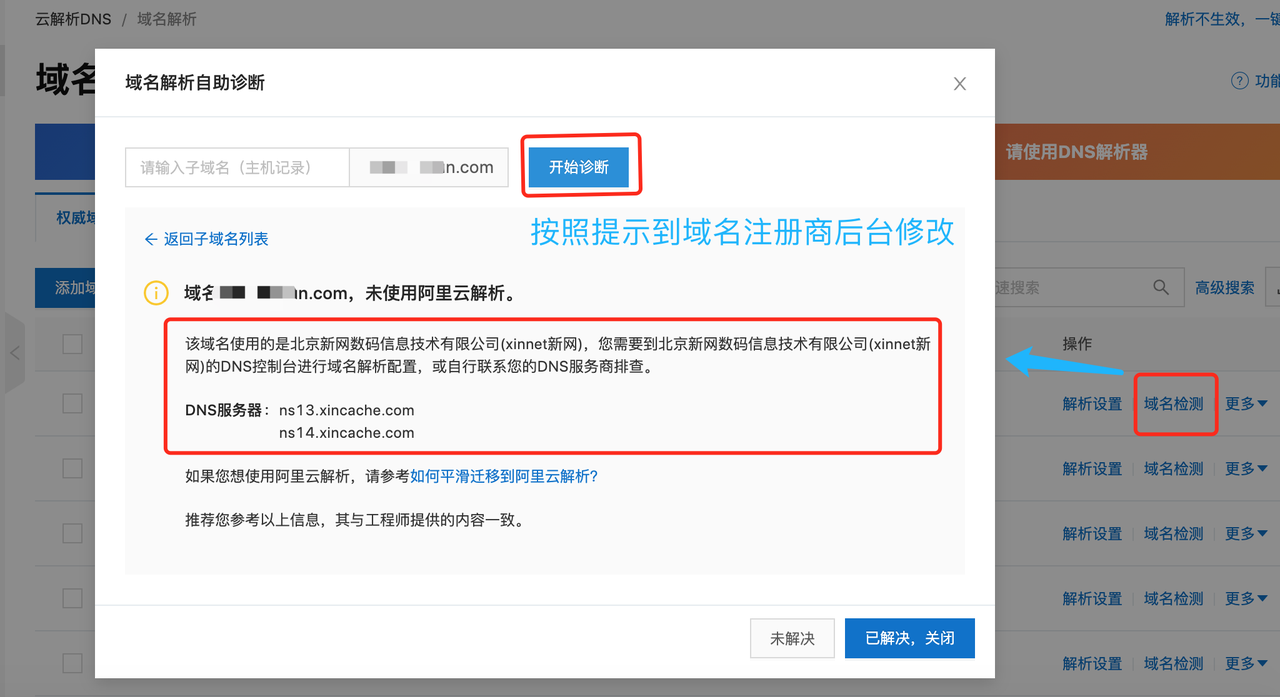 检测下域名的设置是否正确: